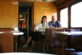 ons laten afzetten bij het Broken Earth Restaurant.