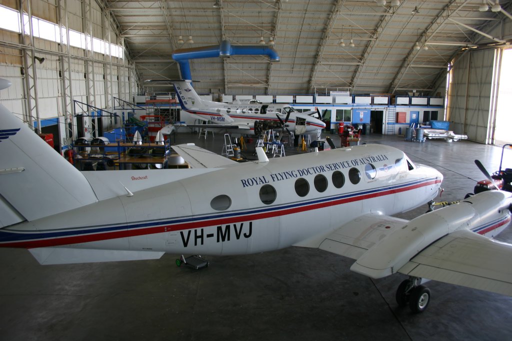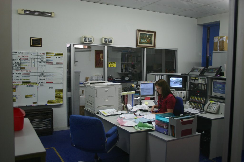 Speciaal voor Guus, die kennelijk nog steeds verliefd is op Emma uit de Flying Docters TV serie zijn we vanochtend voor vertrek even bij het hoofdkwartier wezen kijken. Zoals je op de foto's kunt zien, is Emma aanzienlijk gemoderniseerd. Ook het vliegend materiaal is beter dan in de serie, echter de Boxie Beachcraft stond wel voor het museum. Ook hier heerste een ontspannen informatief sfeertje en kon je overal goed bijkomen. Vanuit dit centrum werd een gebied zo groot als England en Wales samen bedient met 3 vliegtuigen, 7 doktoren, 6 verpleegsters en 6 techneuten. In het gebied wonen slechts 12.000 mensen! Speciaal voor Guus een pet gekocht en daarmee de service financieel ondersteund.