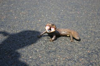 het asfalt tegen (steeds proberen we ze te ontwijken).