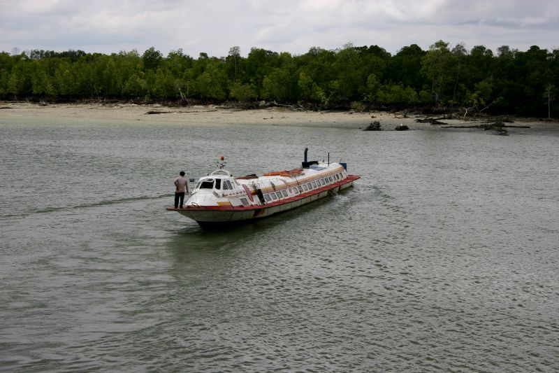 mangroves naar het dorp. Deze mangroves zijn soms zo smal dat er maar 1