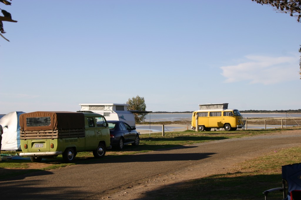 VW-busjes en kevers rond. We hebben onze zonnetent
