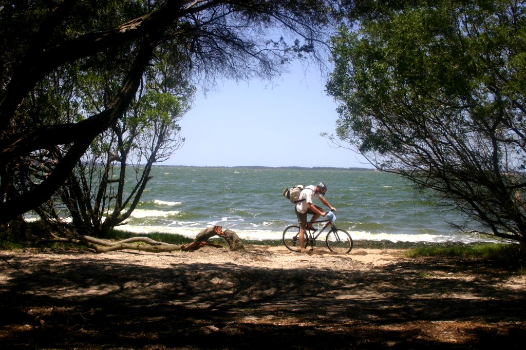 De bossen groeien tot aan het strand. Je rijdt het