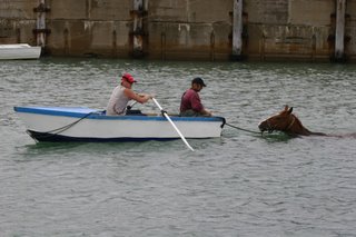 paarden mee uit zwemmen... Dat is weer eens wat anders als de hond uitlaten Hier zou ik nog wel een huisje willen kopen. Alleen is het wat te ver voor een weekendje weg.