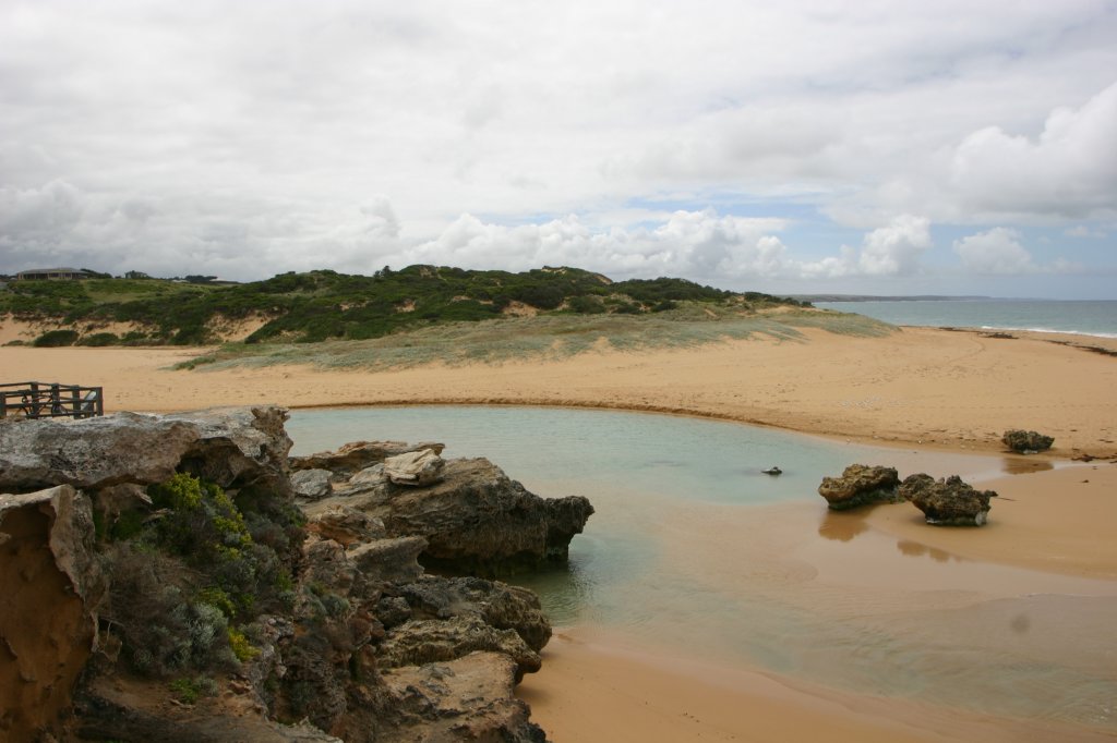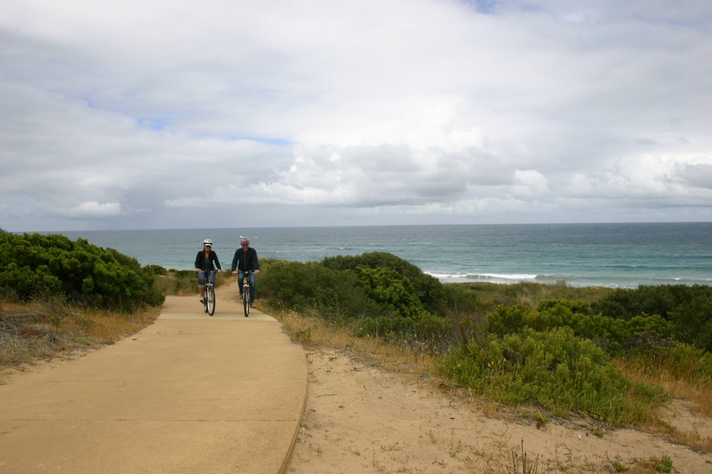 attracties een leuke plaats. Dit is de toegangspoort tot The Great Ocean Road. Er is een prachtige baai met een fietsroute van ca. 6KM dwars door de duinen vlak naast de zee. Middenin een modern cafe voor de hoognodige versterking... Aan de haven nemen een aantal lieden hun
